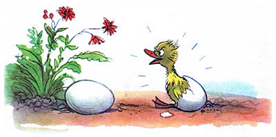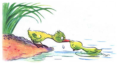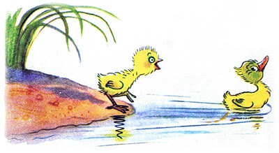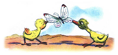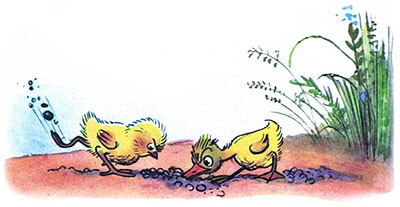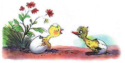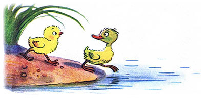 Цыплёнок и Утёнок — весёлая короткая сказка для самых маленьких, которую написал В. Сутеев. Сказку можно слушать онлайн или читать текст с картинками.Кратко о сказке: Вылупились на свет Цыплёнок и Утёнок, подружились и пошли гулять. Утёнок роет ямку и цыплёнок тоже. Утёнок поймал червяка и Цыплёнок не отстает. Потом оба поймали бабочку, и не побоялись лягушки. Утёнок захотел плавать, и Цыплёнок тоже полез в воду. Да вот только Цыплята в отличие от Утят плавать не умеют, поэтому его пришлось спасать.